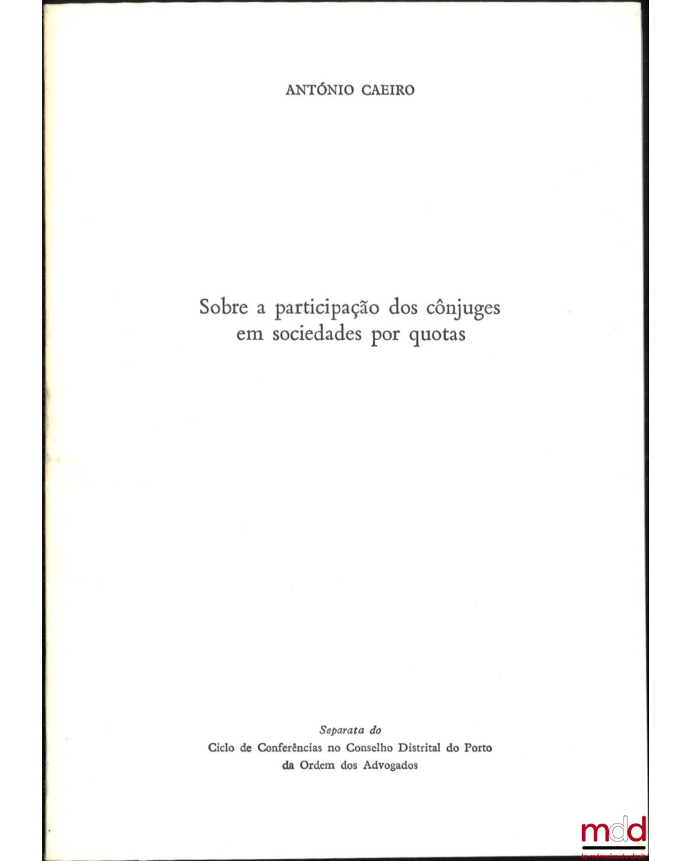 SOBRE A PARTICIPAÇÃO DOS CÔNJUGES EM SOCIEDADES POR QUOTAS, Separata do Ciclo de Conferências no Conselho Distrial do Porto da Ordem dos Advogados, 22 de Março de 1985