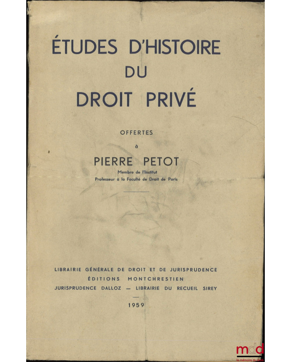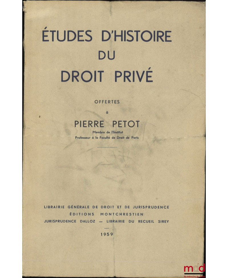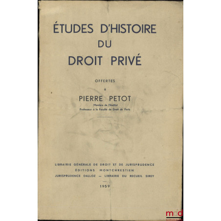 ÉTUDES D’HISTOIRE DU DROIT PRIVÉ OFFERTES À PIERRE PETOT