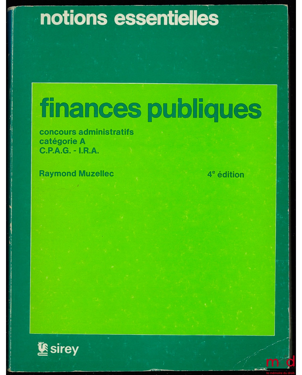 FINANCES PUBLIQUES, Concours administratifs catégorie A, C.P.A.G. - I.R.A., 4ème éd., coll. Notions essentielles
