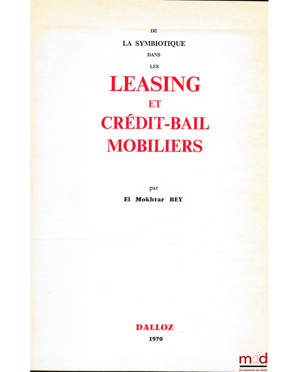 DE LA SYMBIOTIQUE DANS LES LEASING ET CRÉDIT-BAIL MOBILIERS