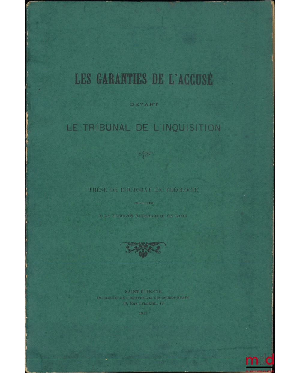 LES GARANTIES DE L’ACCUSÉ DEVANT LE TRIBUNAL DE L’INQUISITION, Thèse de doctorat en théologie