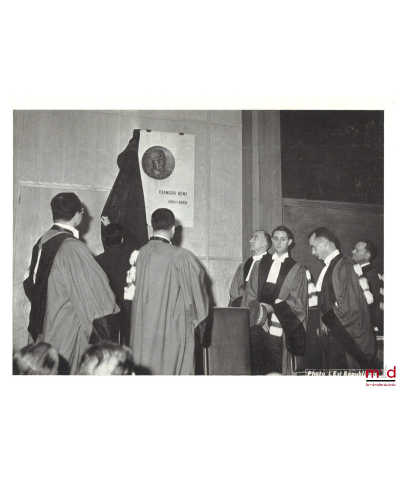 P. Kayser, François Gény, Le professeur et l’Homme ; J. Dabin, François Gény, le Savant ; Michel Villey, François Gény et la renaissance du droit naturel ; B.A. Wortley, L’influence de François Gény sur les juristes de Common Law ; Julliot de la Morandiere, François Gény et la jurisprudence française ; Walter Yung, François Gény et la jurisprudence en Suisse.