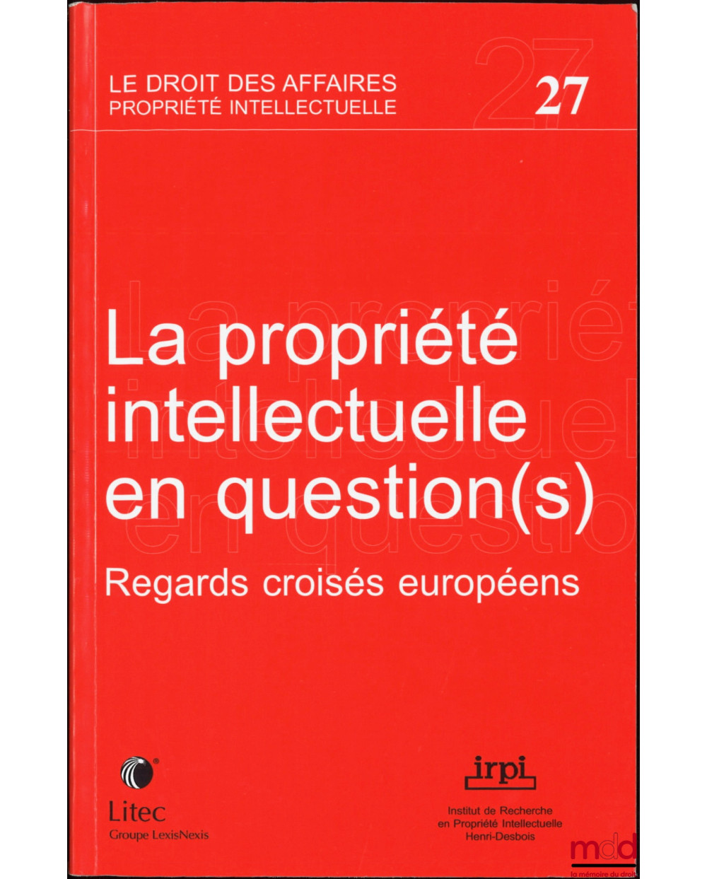 LA PROPRIÉTÉ INTELLECTUELLE EN QUESTION(S), Regards croisés européens, Colloque de l’IRPI, Paris, 16-17 juin 2005, Publications de l’Institut de Recherche en Propriété Intellectuelle Henri Desbois, coll. Le droit des affaires Propriété intellectuelle, n° 27
