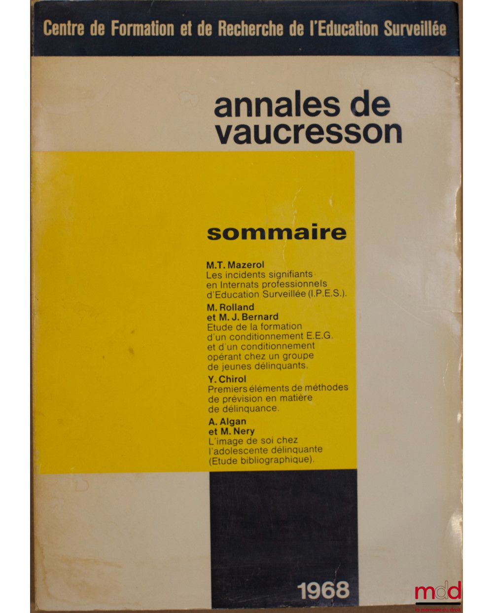 ANNALES DE VAUCRESSON n° 6, Centre de formation et de recherche de l’éducation surveillée