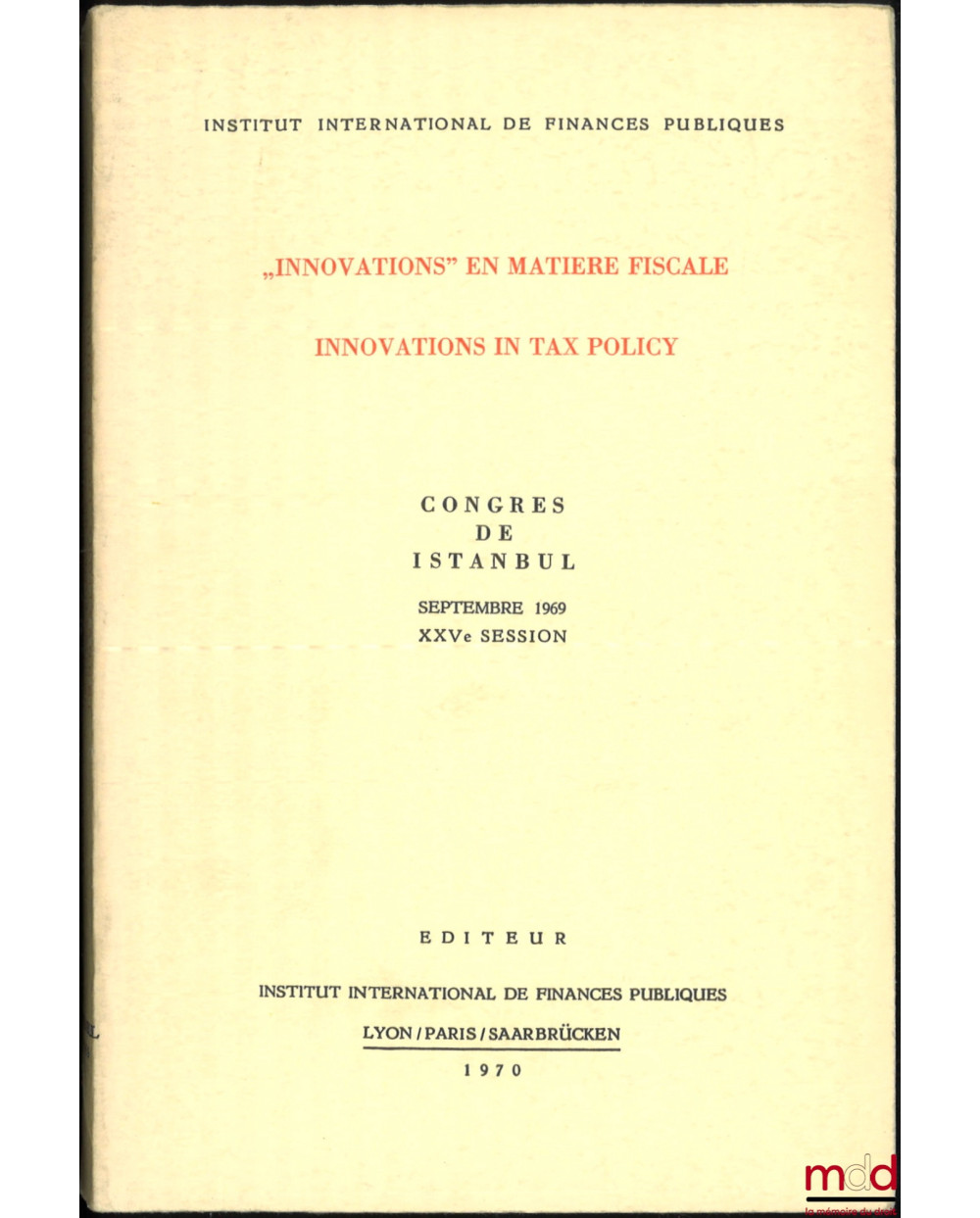 INNOVATIONS EN MATIÈRE FISCALE, INOVATIONS IN TAX POLICY, Congrès de Istanbul, Septembre 1969, XXVe session