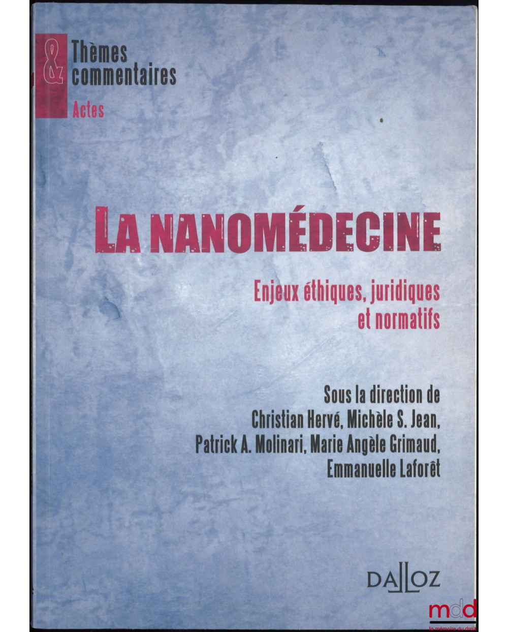 LA NANOMÉDECINE : ENJEUX ÉTHIQUES, JURIDIQUES ET NORMATIFS, dir. Christian Hervé, Michèle S. Jean, Patrick A. Molinari, Marie Angèle Grimaud, Emmanuelle Laforêt