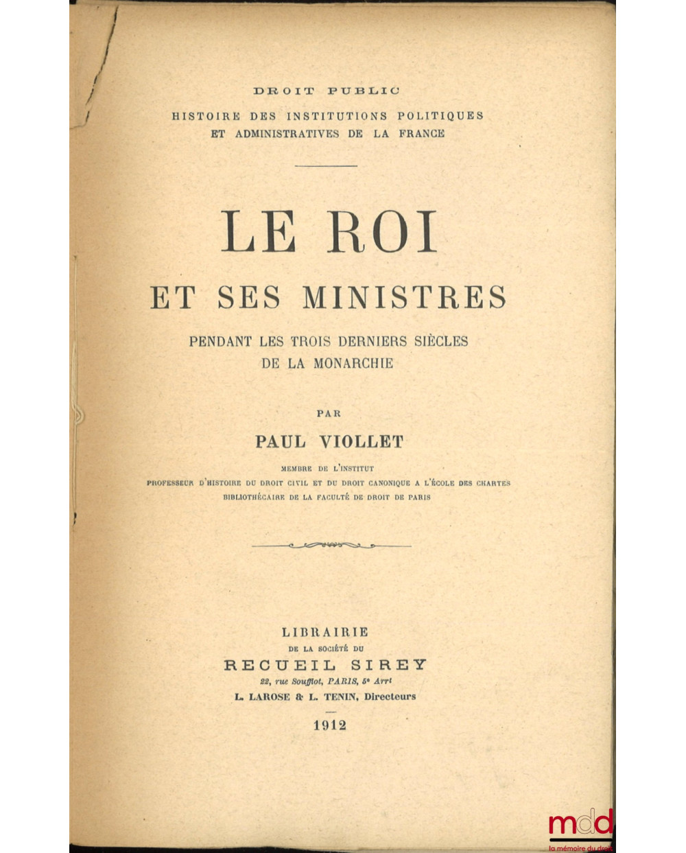LE ROI ET SES MINISTRES pendant les trois derniers siècles de la Monarchie