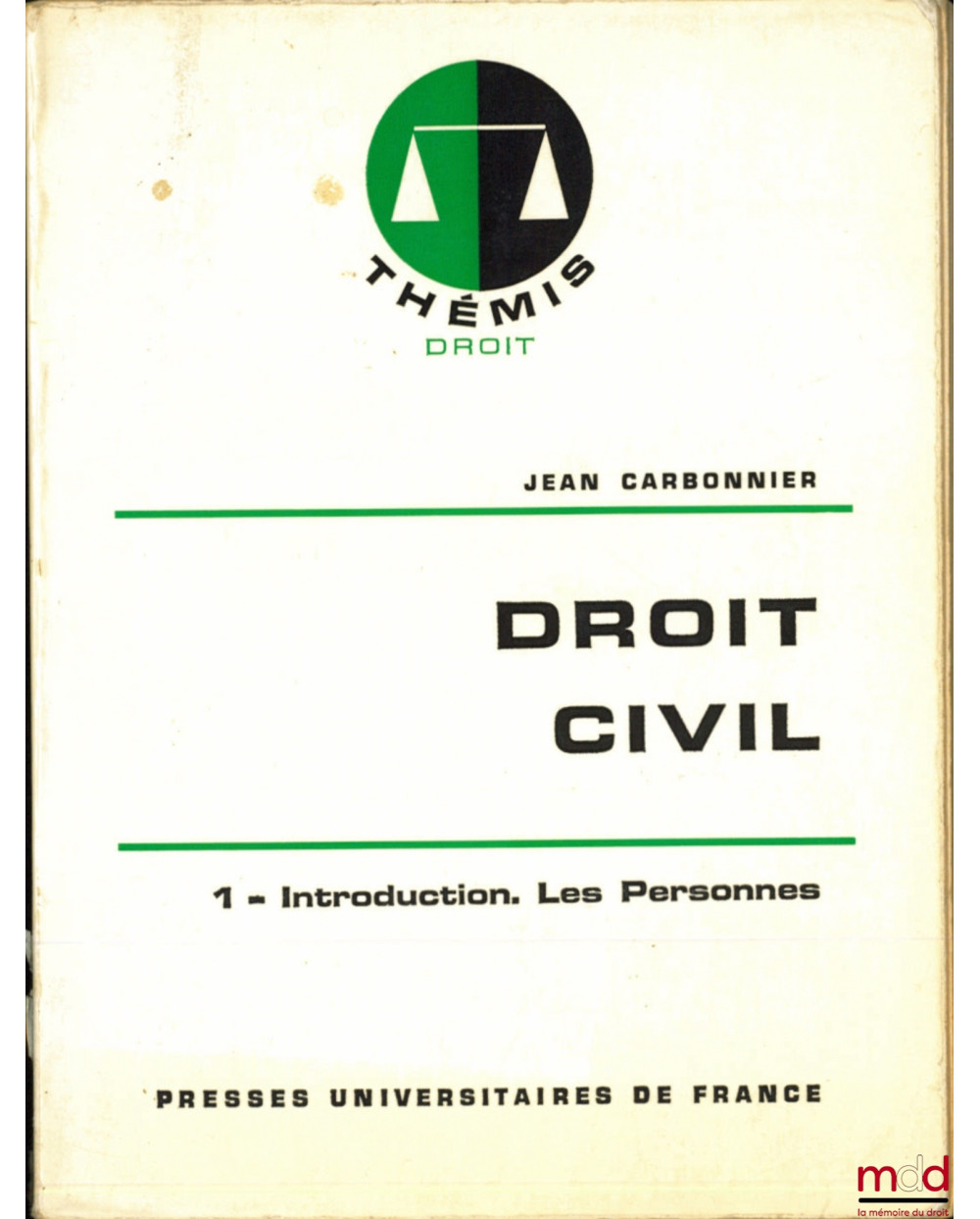 DROIT CIVIL, t. I : Introduction, 10ème éd., coll. Thémis Droit