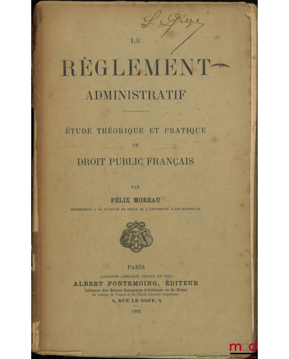 LE RÈGLEMENT ADMINISTRATIF, Étude théorique et pratique de droit public français