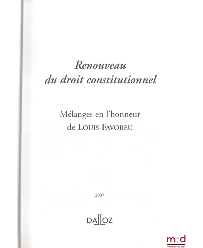 RENOUVEAU DU DROIT CONSTITUTIONNEL, Mélanges en l’honneur de Louis Favoreu