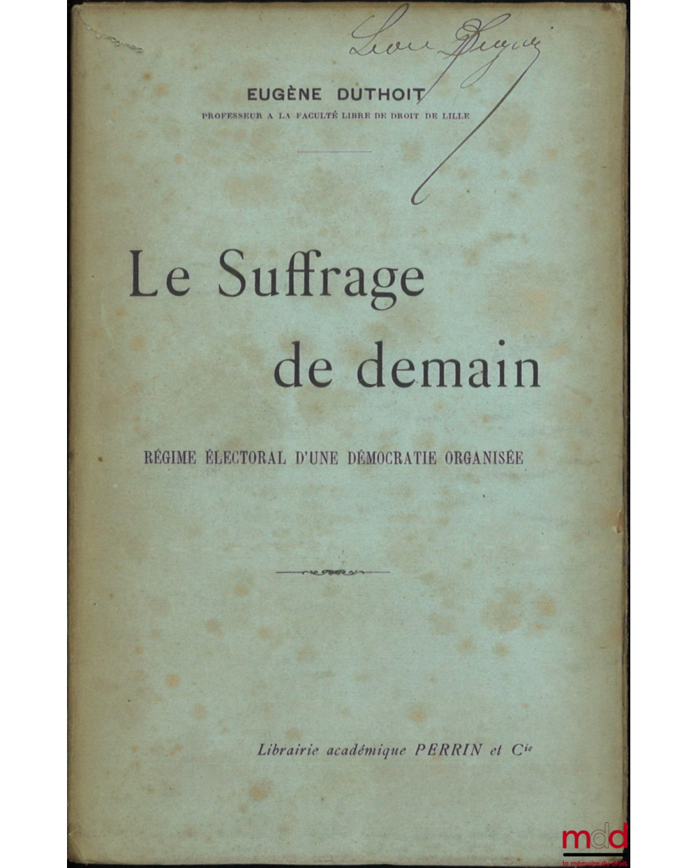 LE SUFFRAGE DE DEMAIN, Régime électoral d’une démocratie organisée