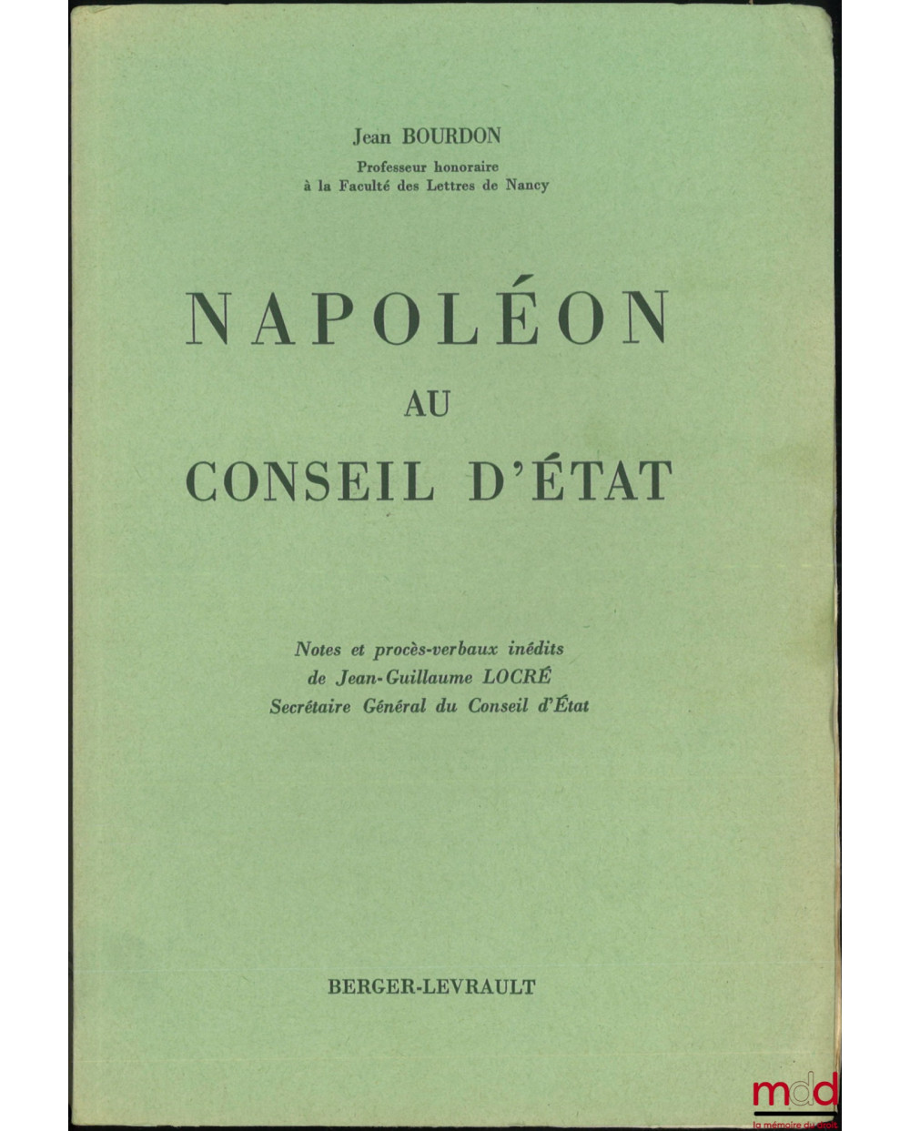 NAPOLÉON AU CONSEIL D’ÉTAT, Notes et procès-verbaux inédits de Jean-Guillaume LOCRÉ, Secrétaire Général du Conseil d’État