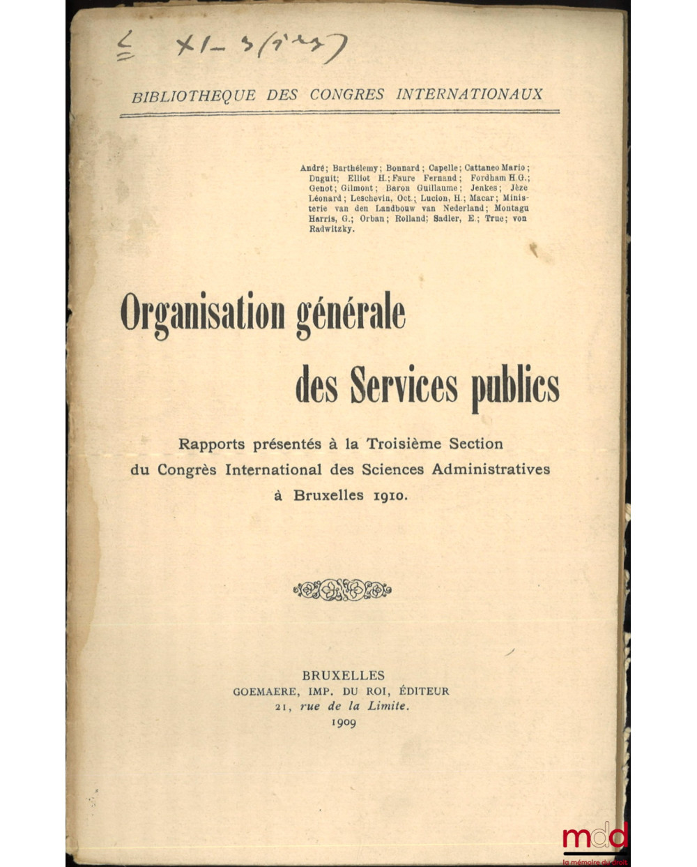 LE RECRUTEMENT ET LA DISCIPLINE DES FONCTIONNAIRES, Premier congrès international des sciences administratives à l’Exposition universelle et Internationale de Bruxelles 1910, Section III : ORGANISATION GÉNÉRALE DES SERVICES PUBLICS