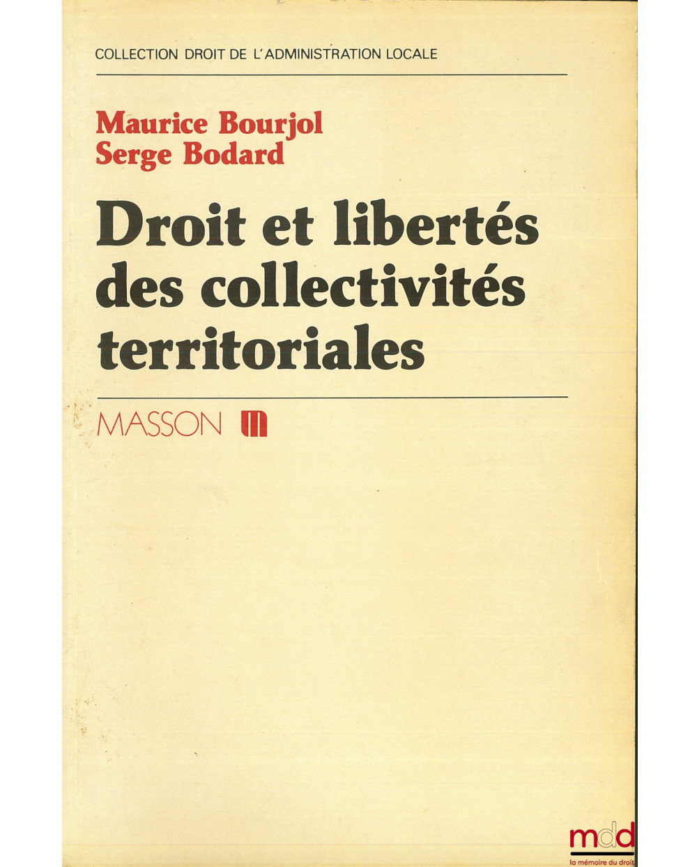 DROIT ET LIBERTÉS DES COLLECTIVITÉS TERRITORIALES, coll. Droit de l’administration locale