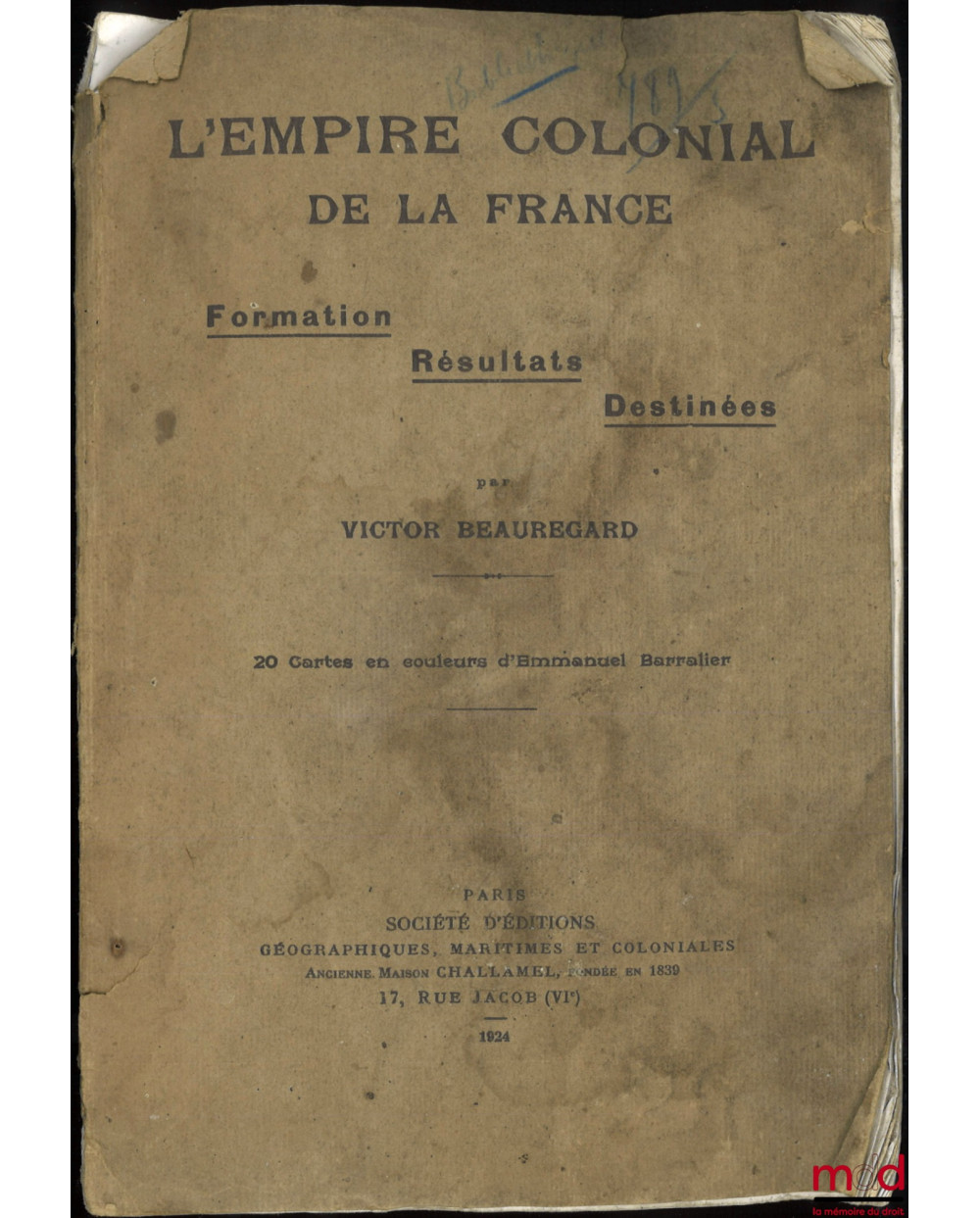 L’EMPIRE COLONIAL DE LA FRANCE, Formations, Résultats, Destinées, 20 cartes en couleurs d’Emmanuel Barralier, La leçon de l’exposition de Marseille