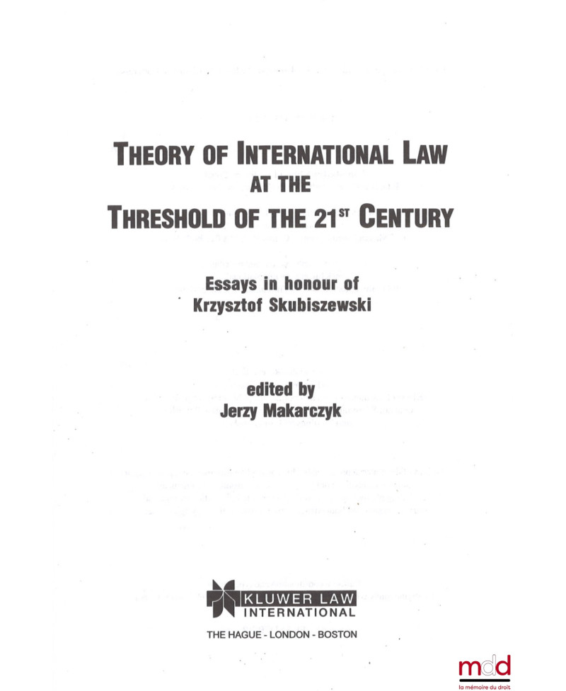 THEORY OF INTERNATIONAL LAW AT THE THRESHOLD OF THE 21st CENTURY, Essays in honour of Krzysztof Skubiszewski, edited by Jerzy Makarczyk