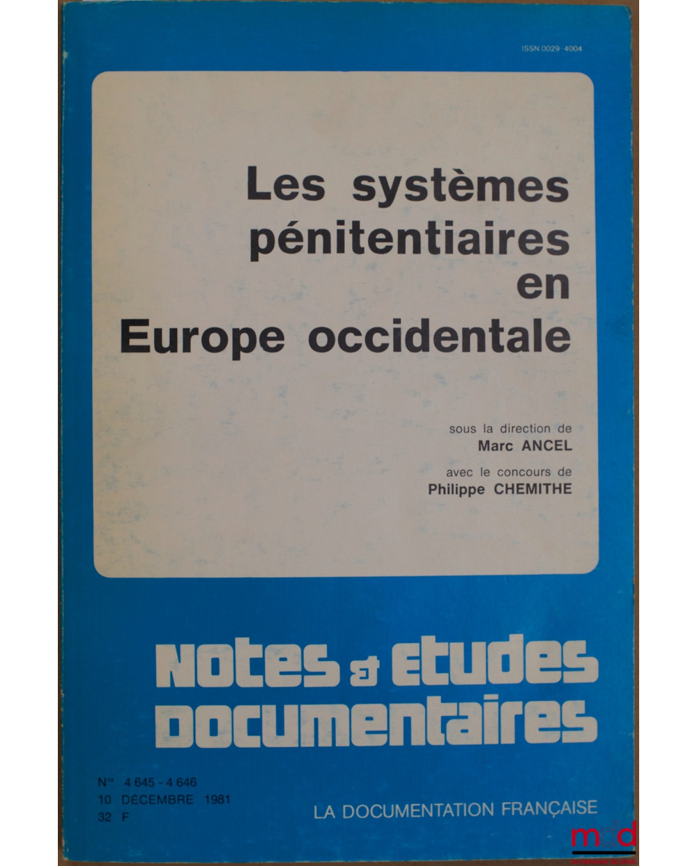 LES SYSTÈMES PÉNITENTIAIRES EN EUROPE OCCIDENTALE, coll. Notes et études documentaires
