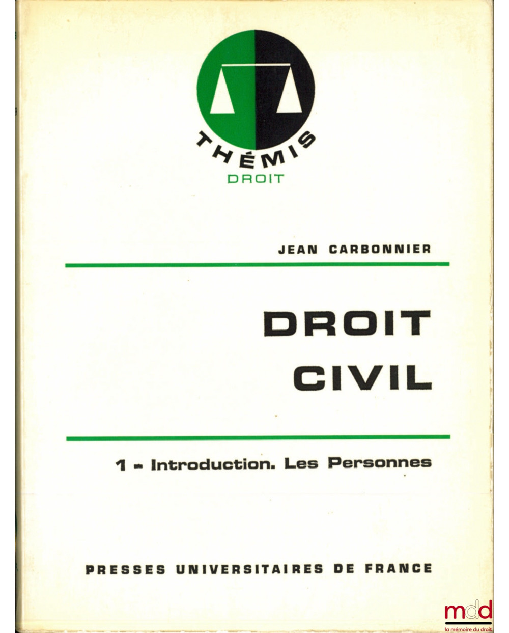 DROIT CIVIL, t. I : Introduction. Les personnes, 10ème éd., coll. thémis Droit