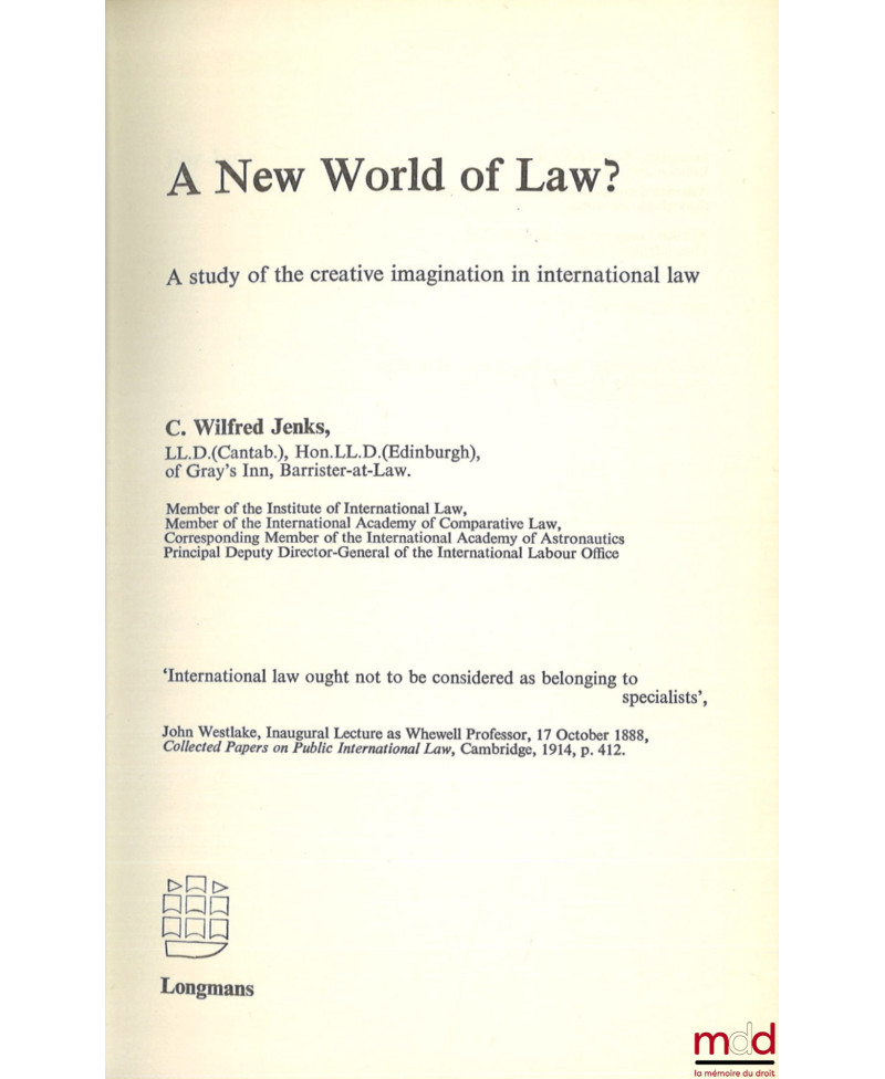A NEW WORLD OF LAW ? A study of the creative imagination in international law