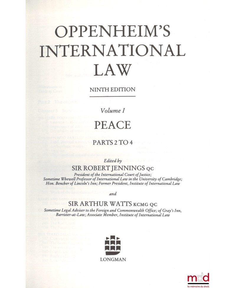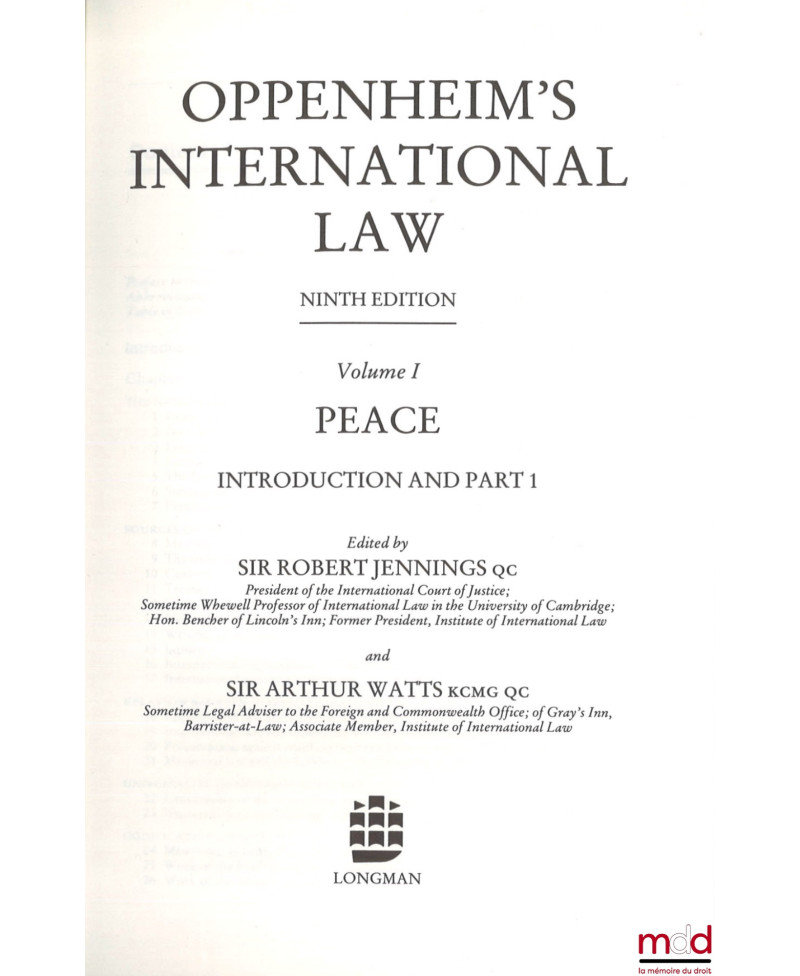 OPPENHEIM’S INTERNATIONAL LAW, vol. 1 : Peace, Ninth ed.