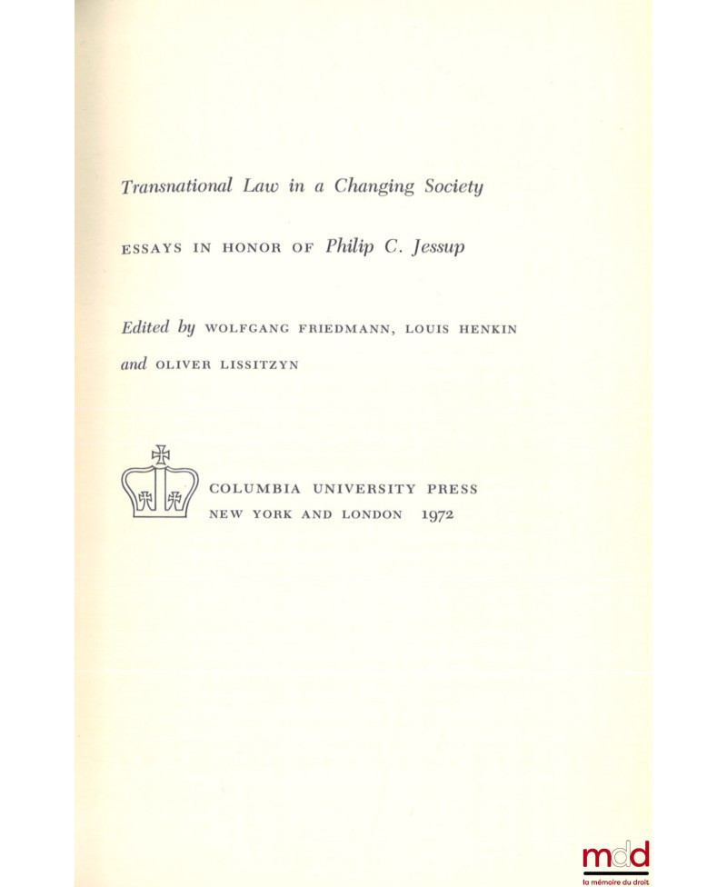 TRANSNATIONAL LAW IN A CHANGING SOCIETY, Essays in honor of Philip C. Jessup, Edited by Wolfgang Friedmann, Louis Henkin and Oliver Lissitzyn