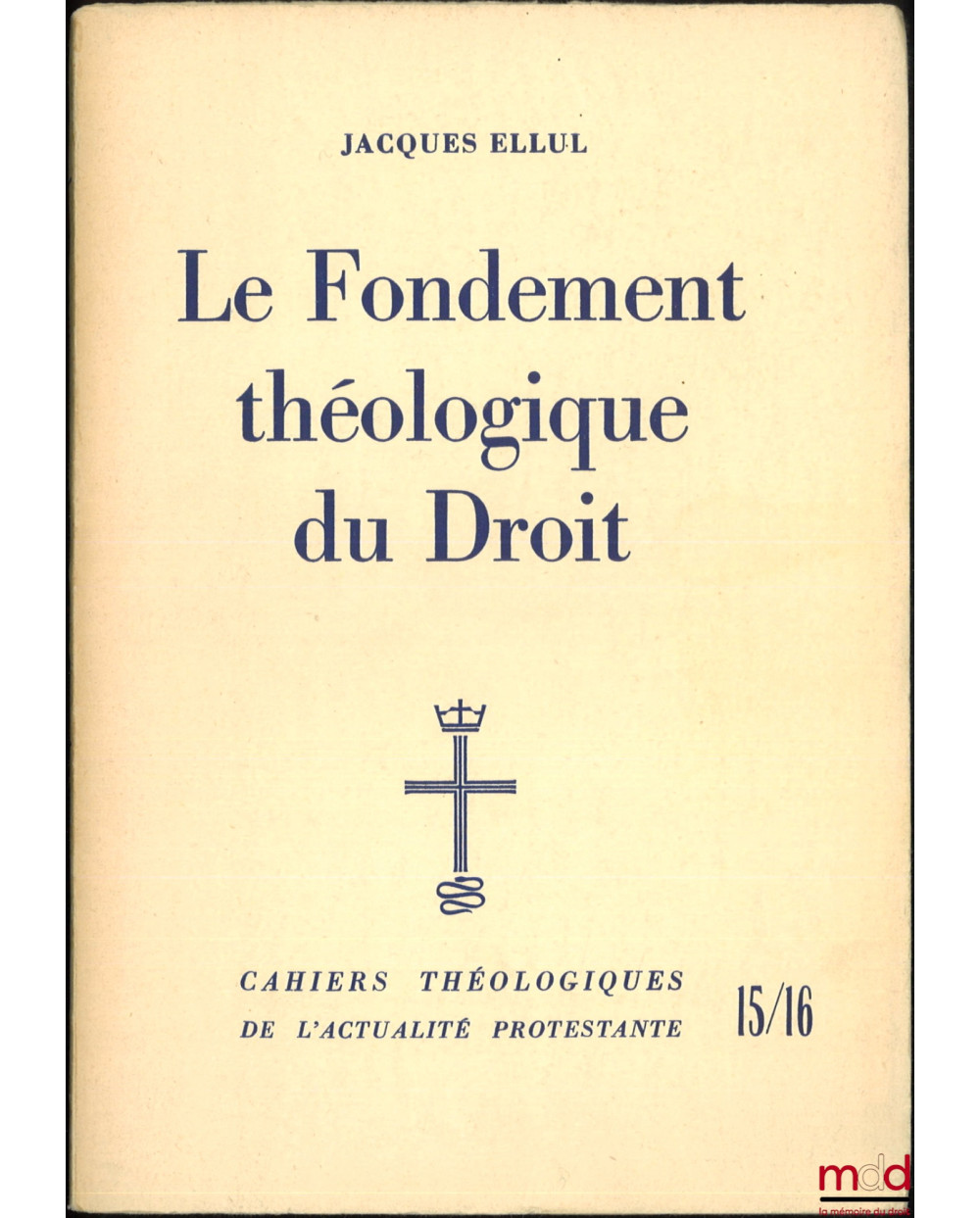 LE FONDEMENT THÉOLOGIQUE DU DROIT, Cahiers théologiques de l’actualité protestante, 15/16