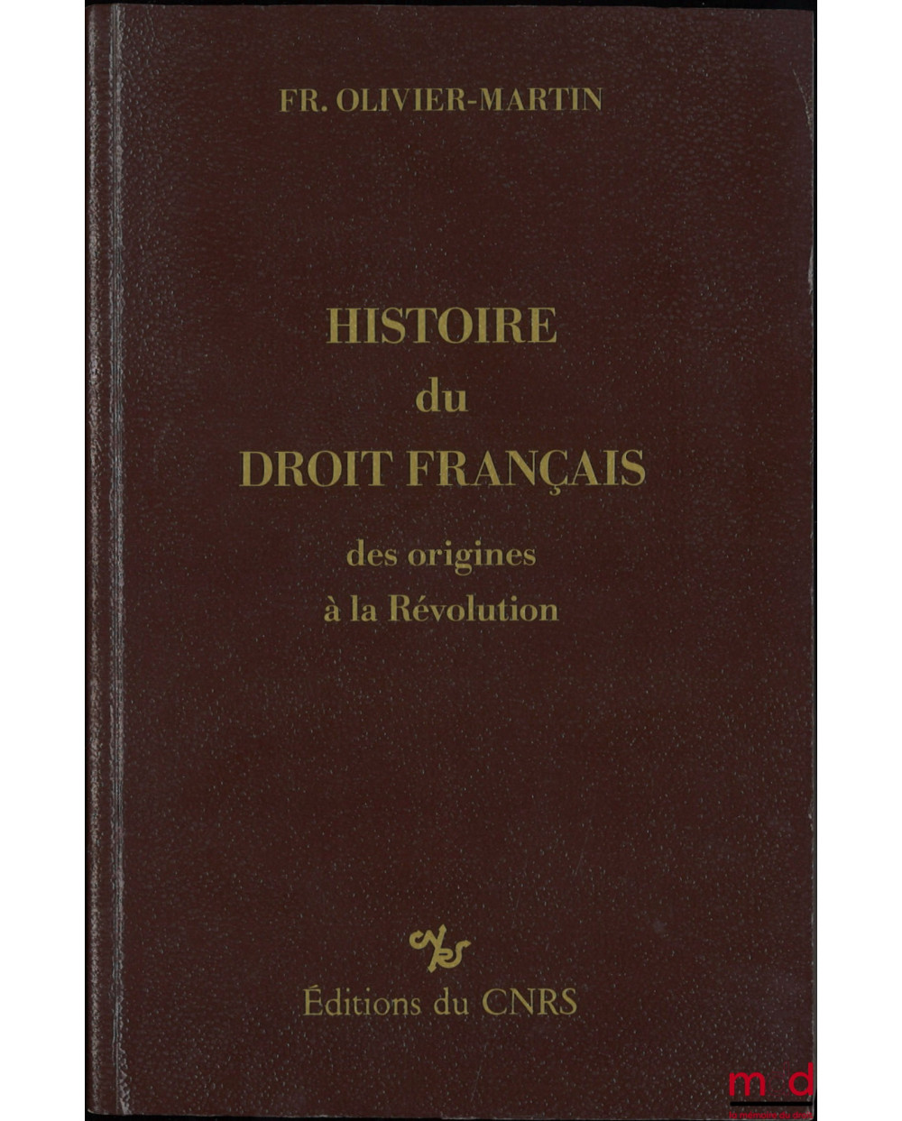 HISTOIRE DU DROIT FRANÇAIS DES ORIGINES À LA RÉVOLUTION, Reproduction photomécanique de l’édition Domat Montchrestien parue en 1948