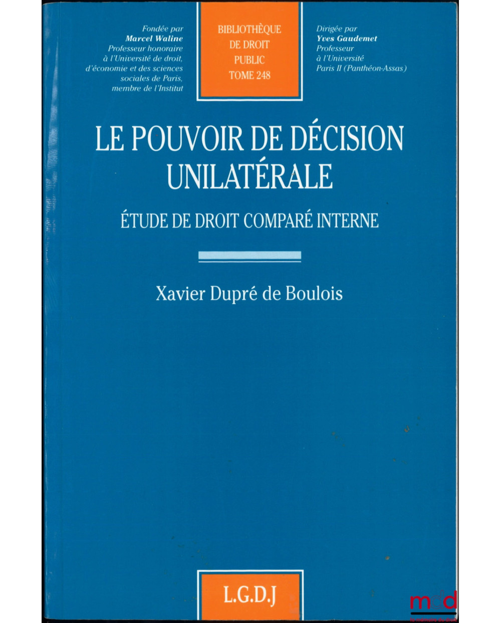 LE POUVOIR DE DÉCISION UNILATÉRALE, Étude de droit comparé interne