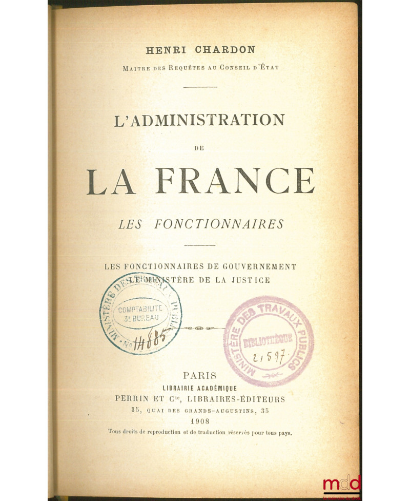 L’ADMINISTRATION DE LA FRANCE - LES FONCTIONNAIRES : LES FONCTIONNAIRES DE GOUVERNEMENT, LE MINISTÈRE DE LA JUSTICE