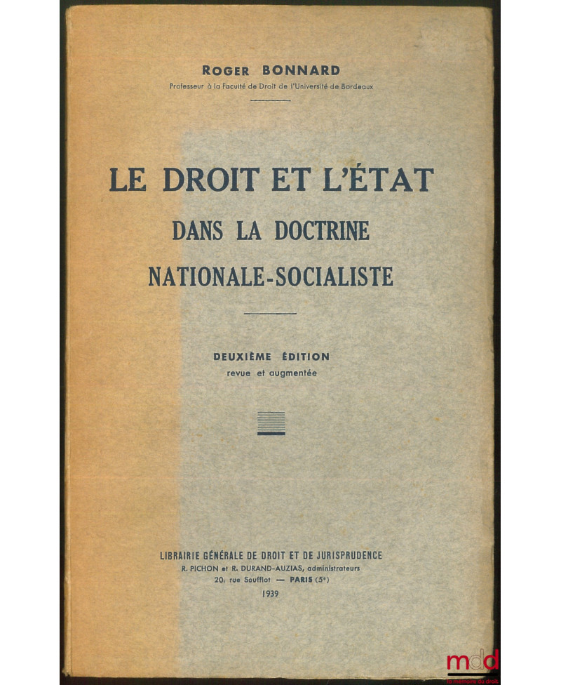 LE DROIT ET L’ÉTAT DANS LA DOCTRINE NATIONALE-SOCIALISTE, 2e éd. revue et augmentée