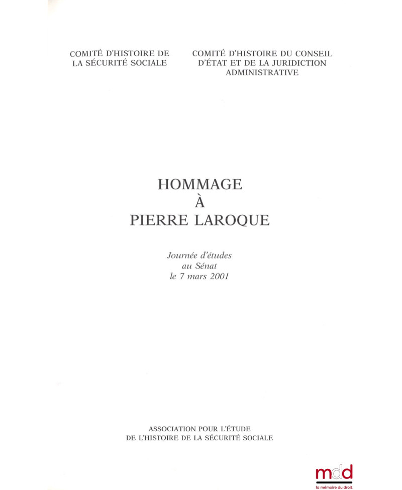 HOMMAGE À PIERRE LAROQUE. JOURNÉE D’ÉTUDES AU SÉNAT LE 7 MARS 2001 organisée par le Comité d’histoire de la Sécurité Sociale et le Comité d’histoire du Conseil d’État et de la juridiction administrative