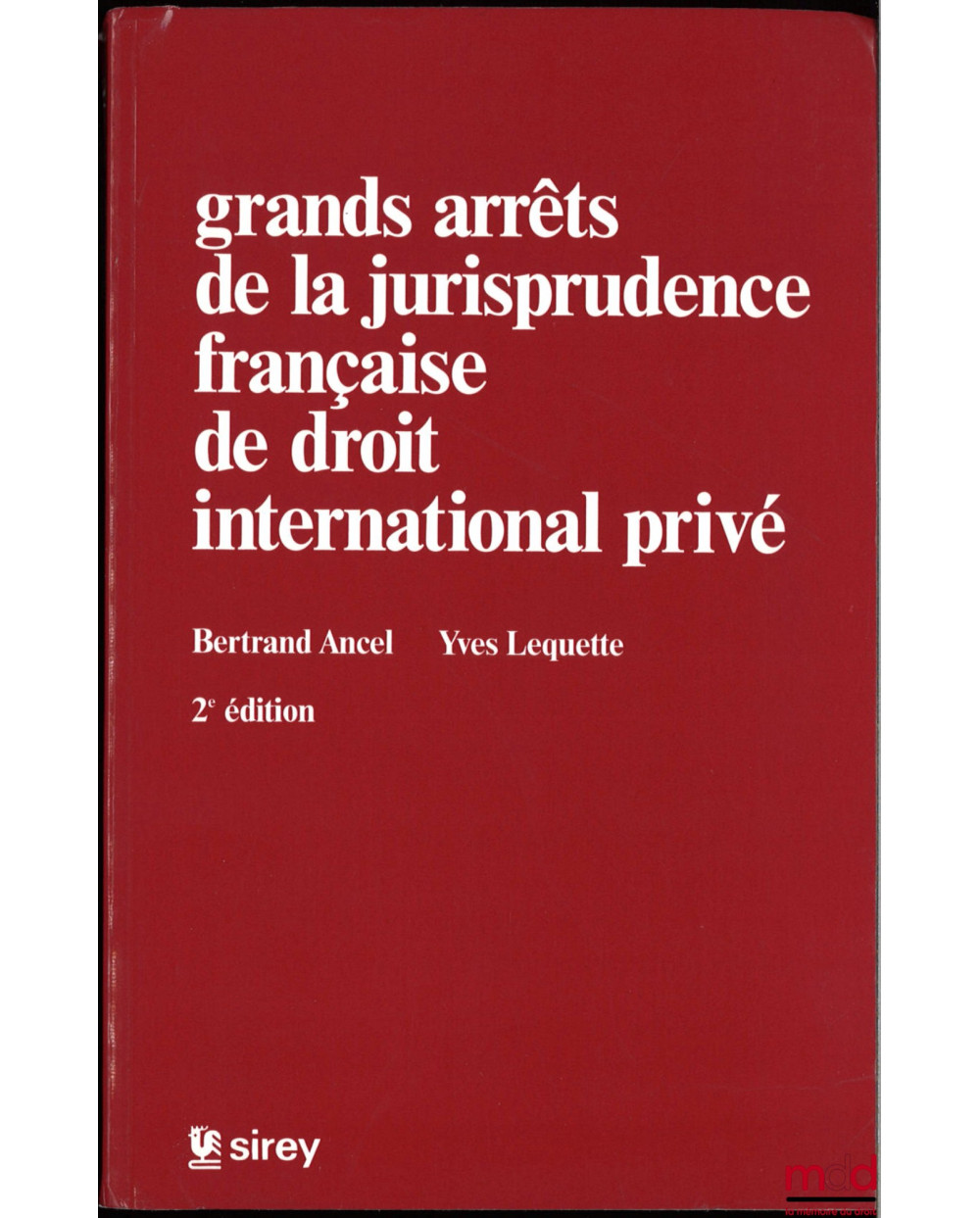 GRANDS ARRÊTS DE LA JURISPRUDENCE FRANÇAISE DE DROIT INTERNATIONAL PRIVÉ, Préface de Henri Batiffol, 2e éd.