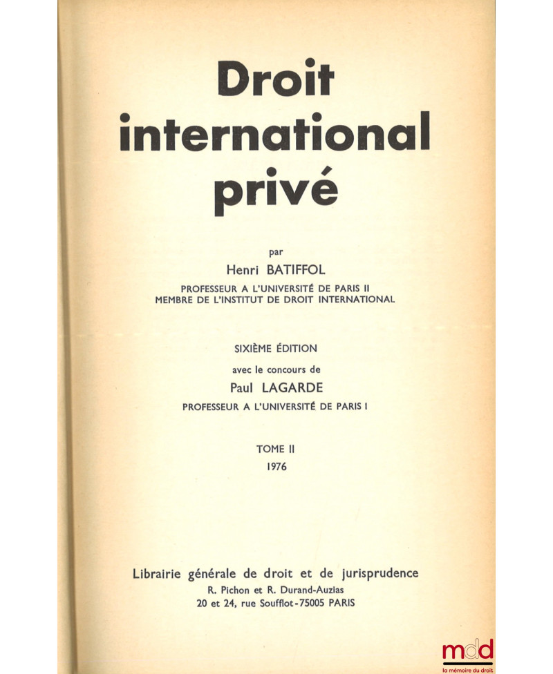 DROIT INTERNATIONAL PRIVÉ, 6e éd., t. II [seul]