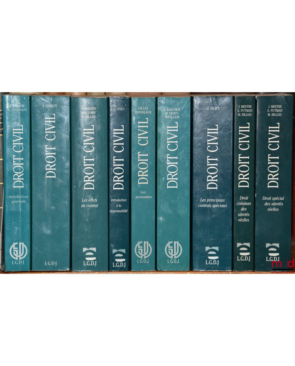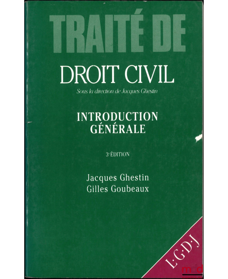 TRAITÉ DE DROIT CIVIL, sous la direction de Jacques Ghestin :– INTRODUCTION GÉNÉRALE, (3e éd, 1990) ;– LA FORMATION DU CONTRAT, Principes et caractères essentiels - Ordre public, Consentement, objet, cause, (3e éd., 1993) ;– LES EFFETS DU CONTRAT, Interprétation - Qualification - Durée - Effet relatif - Opposabilité, (2e éd., 1994) ;– INTRODUCTION À LA RESPONSABILITÉ, Évolution générale - Responsabilité civile et responsabilité pénale, Responsabilité contractuelle et responsabilité délictuelle, (2e éd., 1995) ;– LES PERSONNES, (1re éd., 1989) ;– LA FAMILLE : FONDATION ET VIE DE FAMILLE, Mariage - concubinage, Filiation - Autorité parentale, (1re éd., 1989) ;– LES PRINCIPAUX CONTRATS SPÉCIAUX, (1re éd., 1996) ;– DROIT COMMUN DES SÛRETÉS RÉELLES, Théorie générale, (1re éd., 1996) ;– DROIT SPÉCIAL DES SÛRETÉS RÉELLES, (1re éd., 1996).