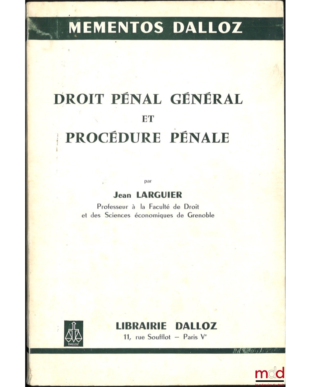 DROIT PÉNAL GÉNÉRAL ET PROCÉDURE PÉNALE, coll. Mémentos Dalloz