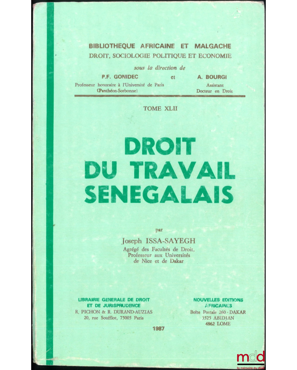 DROIT DU TRAVAIL SÉNÉGALAIS, Bibl. africaine et malgache, t. XLII