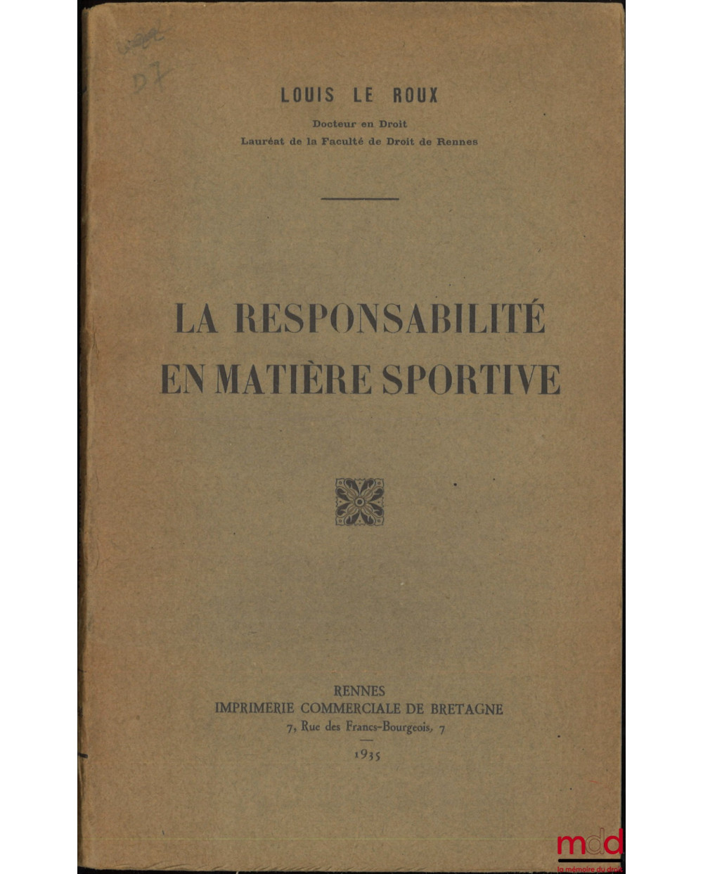 LA RESPONSABILITÉ EN MATIÈRE SPORTIVE