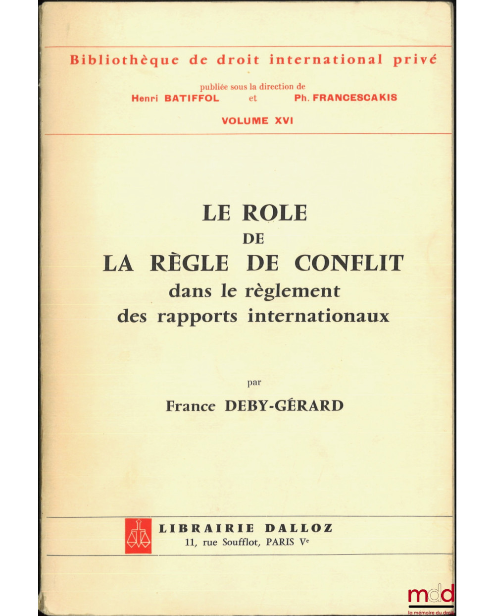 LE RÔLE DE LA RÈGLE DE CONFLIT DANS LE RÈGLEMENT DES RAPPORTS INTERNATIONAUX, Bibl. de droit international privé, vol. XVI