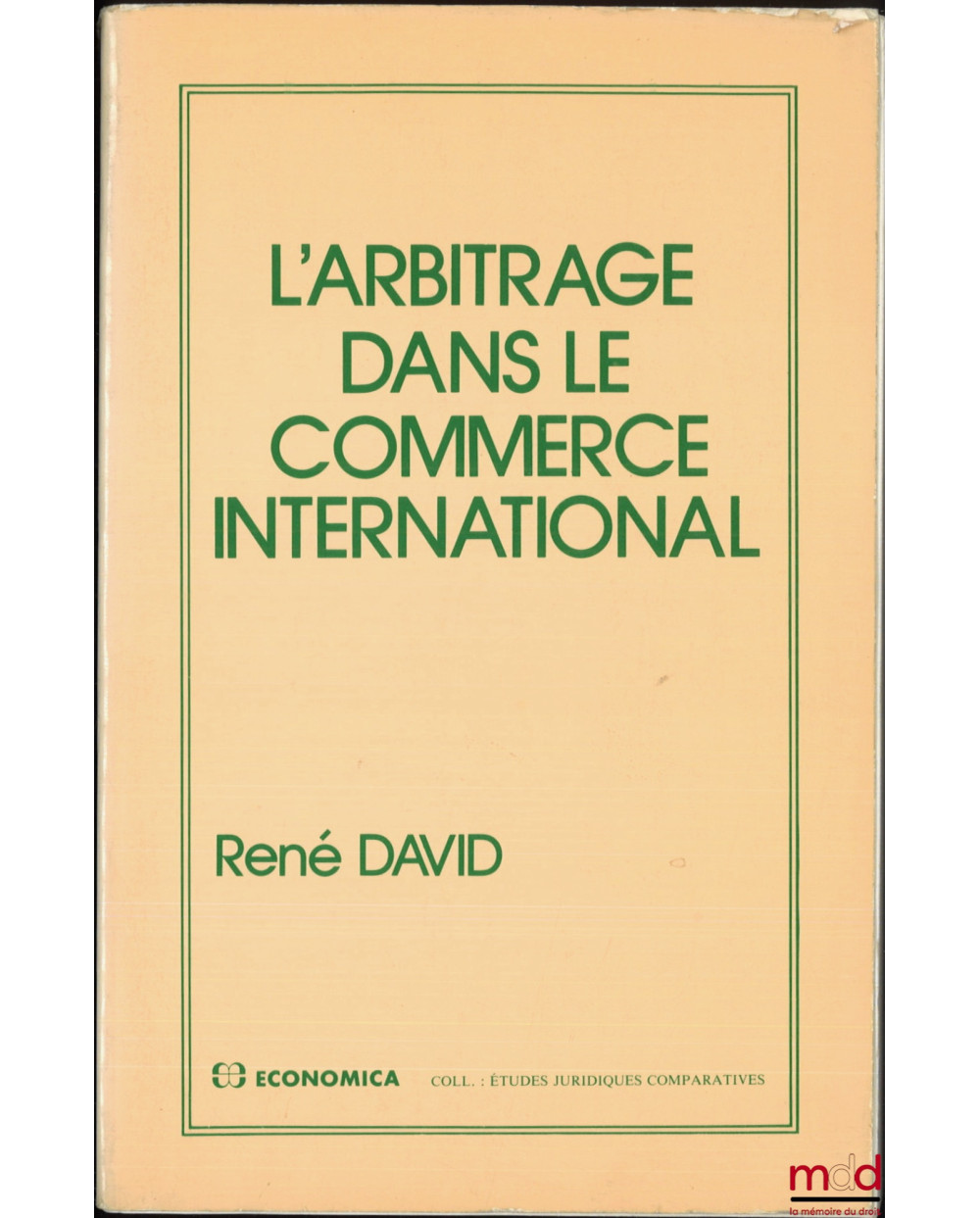 L’ARBITRAGE DANS LE COMMERCE INTERNATIONAL, coll. Études juridiques comparatives
