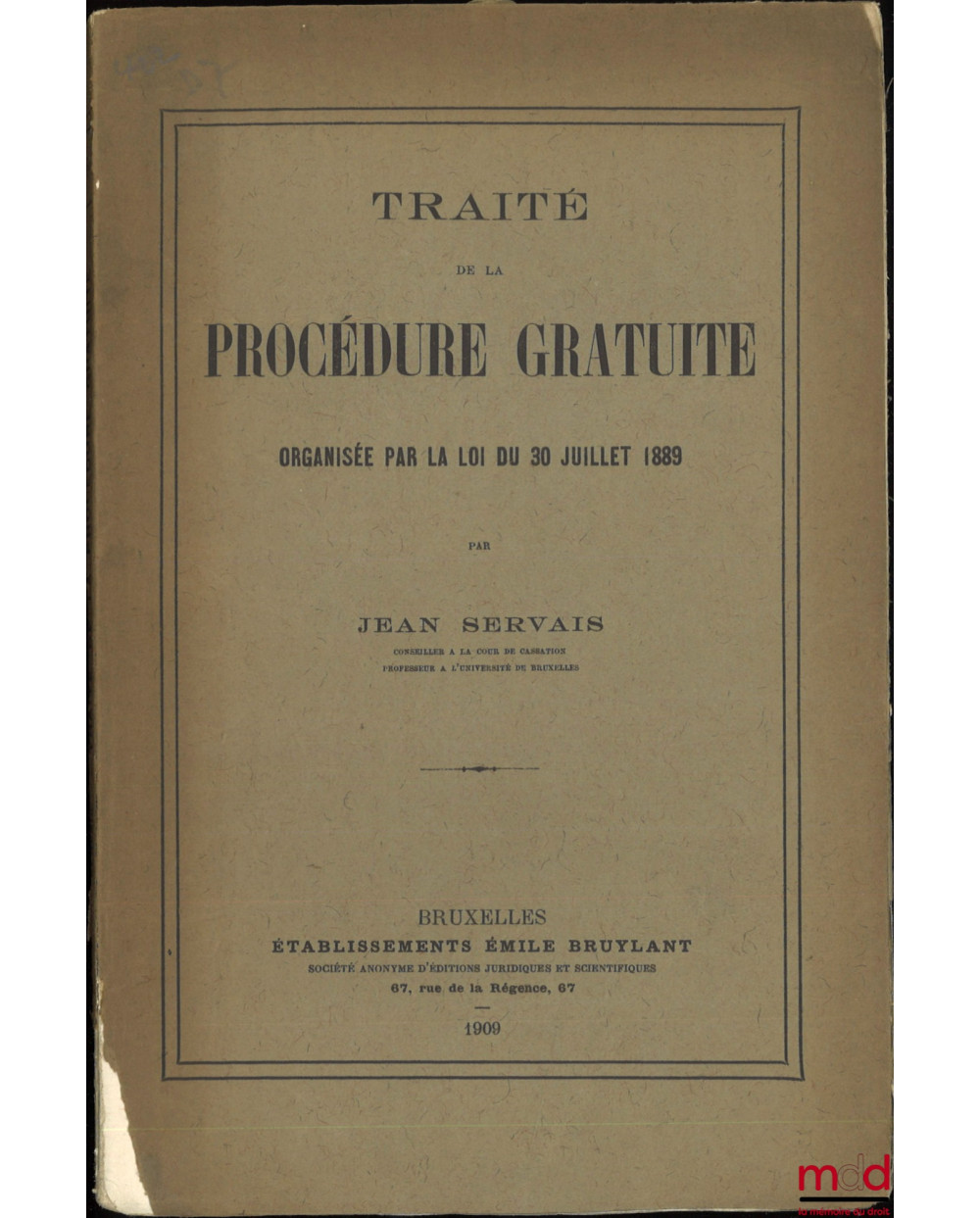 TRAITÉ DE LA PROCÉDURE GRATUITE organisée par la loi du 30 juillet 1889