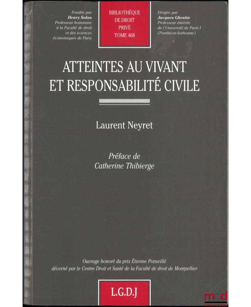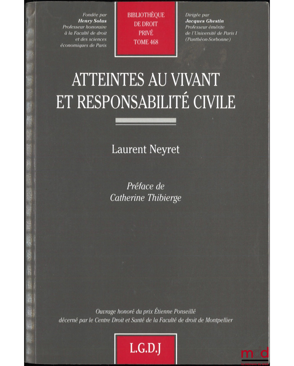 ATTEINTES AU VIVANT ET RESPONSABILITÉ CIVILE, Préface de Catherine Thibierge, Bibl. de droit privé, t. 468