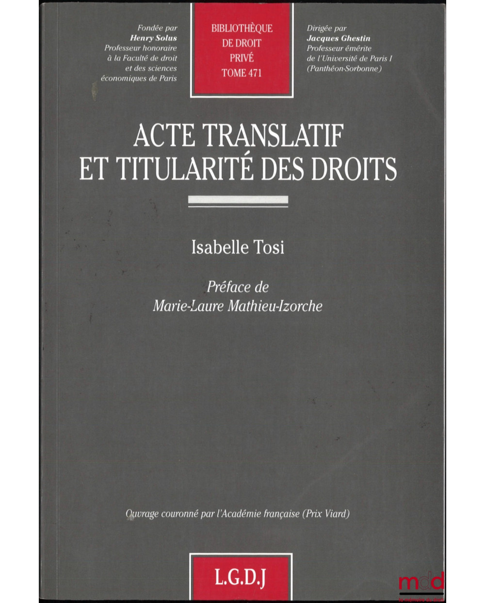 ACTE TRANSLATIF ET TITULARITÉ DES DROITS, Préface de Marie-Laure Mathieu-Izorche, Bibl. de droit privé, t. 471