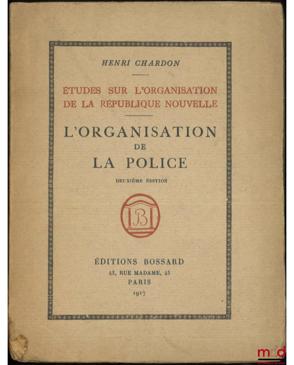 L’ORGANISATION DE LA POLICE, Études sur l’organisation de la République nouvelle, 2e éd.