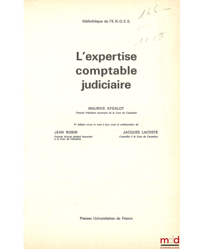 L’EXPERTISE COMPTABLE JUDICIAIRE, 5e éd. revue et mise à jour avec la collaboration de Jean Robin et Jacques Lacoste
