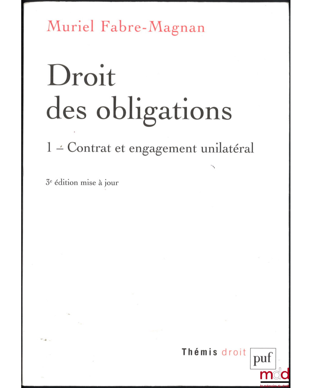 DROIT DES OBLIGATIONS, t. I [seul] : Contrat et engagement unilatéral, 3e éd. mise à jour