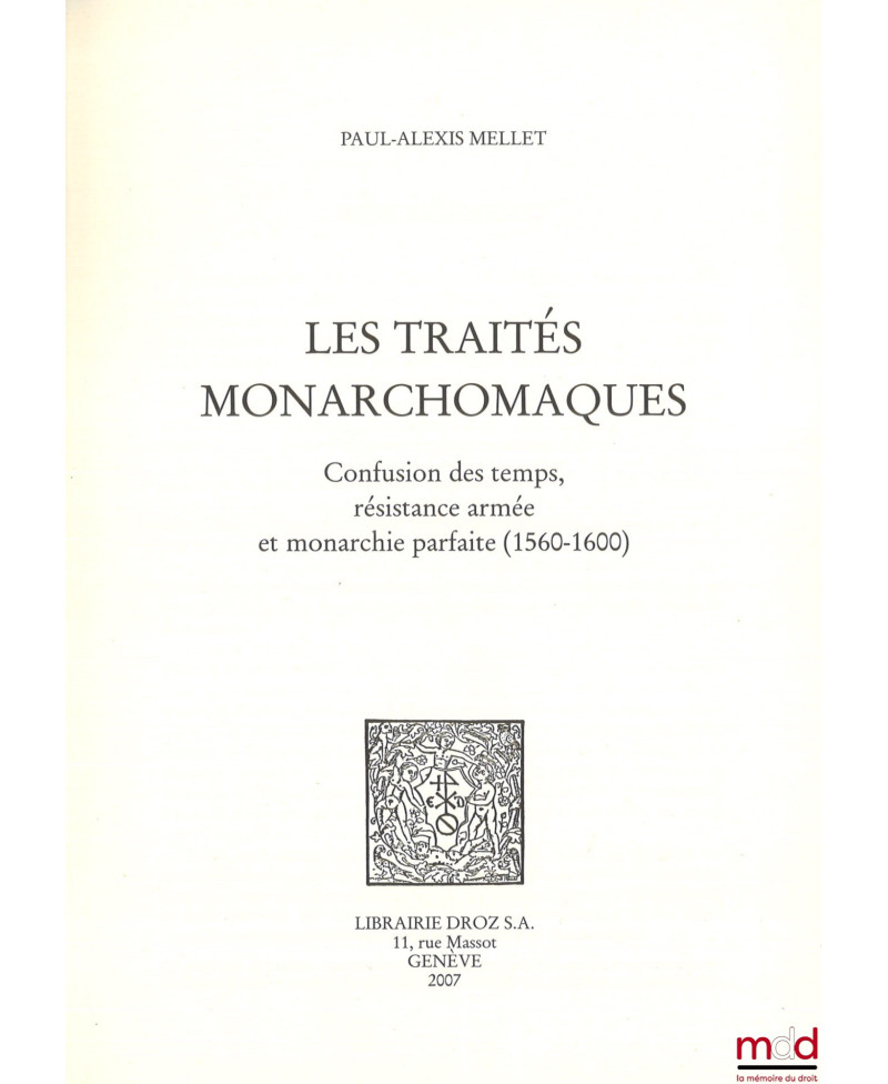 LES TRAITÉS MONARCHOMAQUES, Confusion des temps, résistance armée et monarchie parfaite (1560-1600)