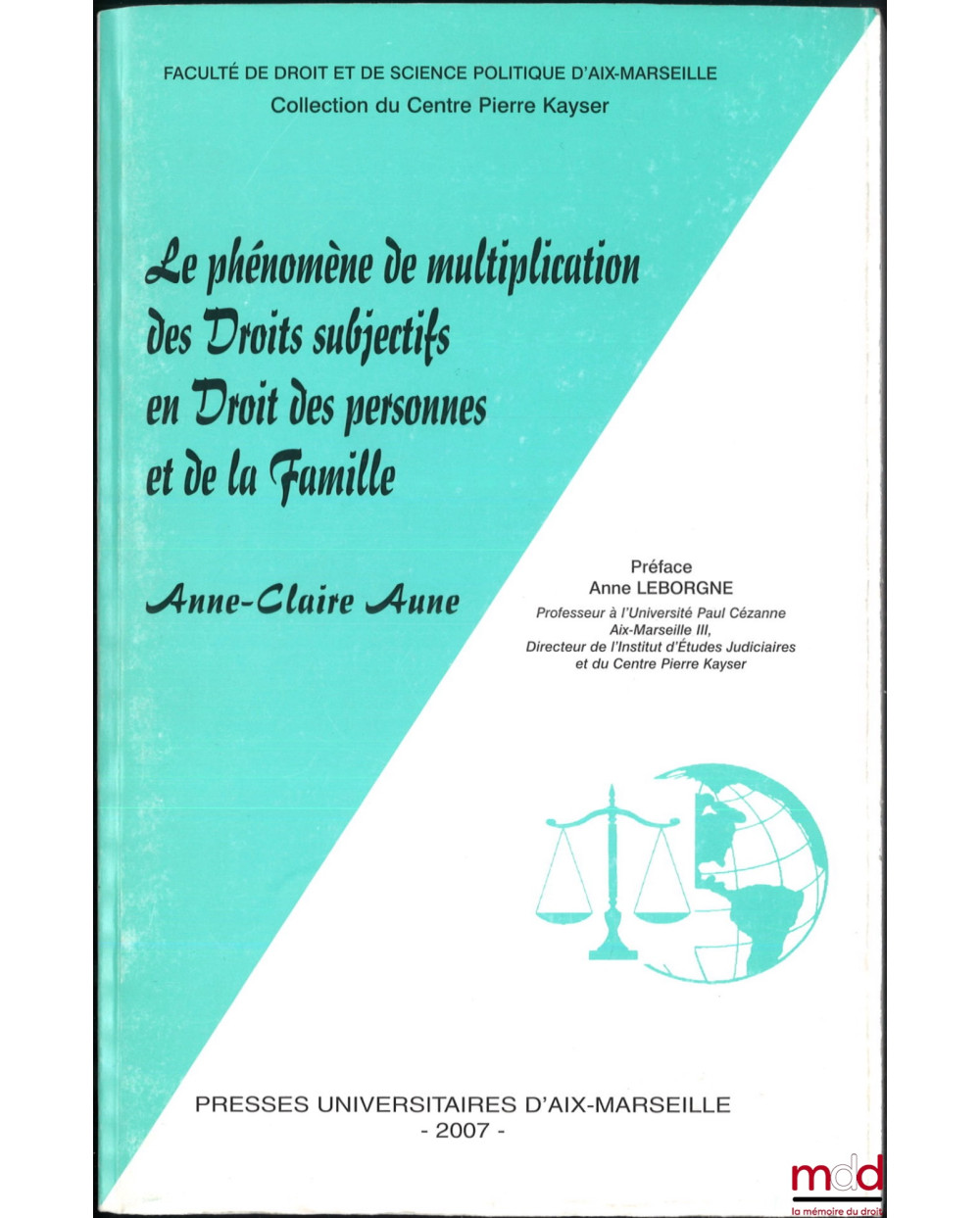 LE PHÉNOMÈNE DE MULTIPLICATION DES DROITS SUBJECTIFS EN DROIT DES PERSONNE ET DE LA FAMILLE, Préface d’Anne Leborgne, Faculté de droit et de science politique d’Aix-Marseille