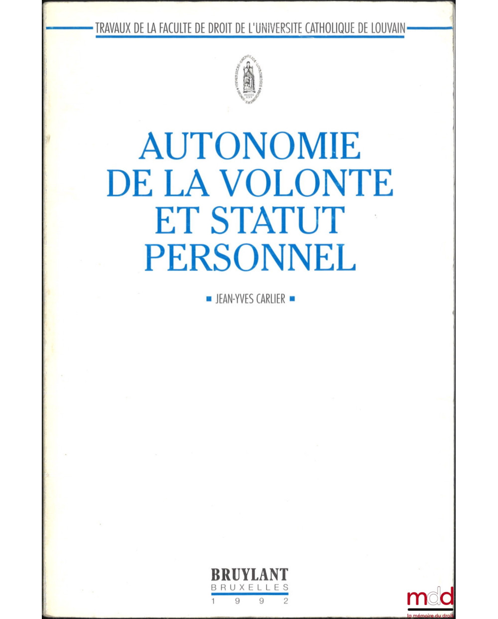 AUTONOMIE DE LA VOLONTÉ ET STATUT PERSONNEL, Étude prospective de droit international privé, Préface de François Rigaux, Travaux de la faculté de droit de l’Université catholique de Louvain,