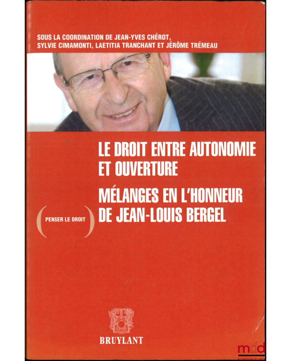 LE DROIT ENTRE AUTONOMIE ET OUVERTURE, Mélanges en l’honneur de Jean-Louis Bergel, sous la coordination de Jean-Yves Chérot, Sylvie Cimamonti, Lætitia Tranchant et Jérôme Trémeau