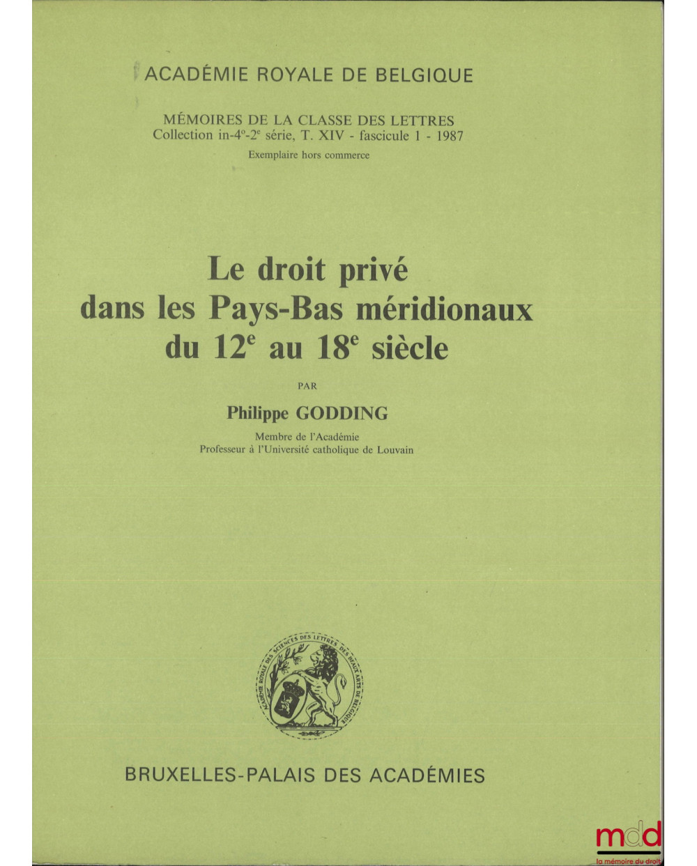 LE DROIT PRIVÉ DANS LES PAYS-BAS MÉRIDIONAUX DU 12e AU 18e SIÈCLE